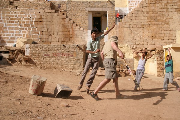However, once the common ground had been found ("My name? James... Yes, that's right like James Bond...", "I'm from England... Yes, that's right we beat those Canadians in the cricket last week...") everything went swimmingly. Upon meeting some young street cricketers in Jaisalmer during the second week it was beginning to feel much more like home. The game was just like I remember my summertime street-cricket - same rules ("6 and out"), same characters (tempestuous batsmen, earnest bowlers and lackadaisical fielders) - just a little hotter and dustier than the suburbs of Bristol.